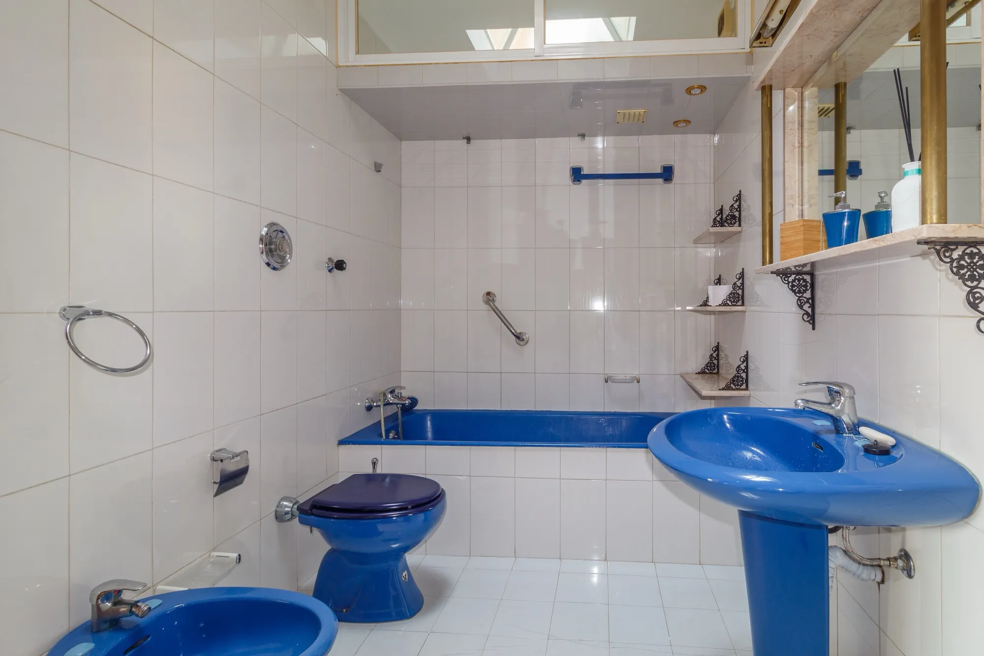 À direita do hall, encontra-se uma casa de banho completa, adaptada com duas portas, permitindo que seja utilizada como suíte ou de serviço, conforme a sua necessidade.