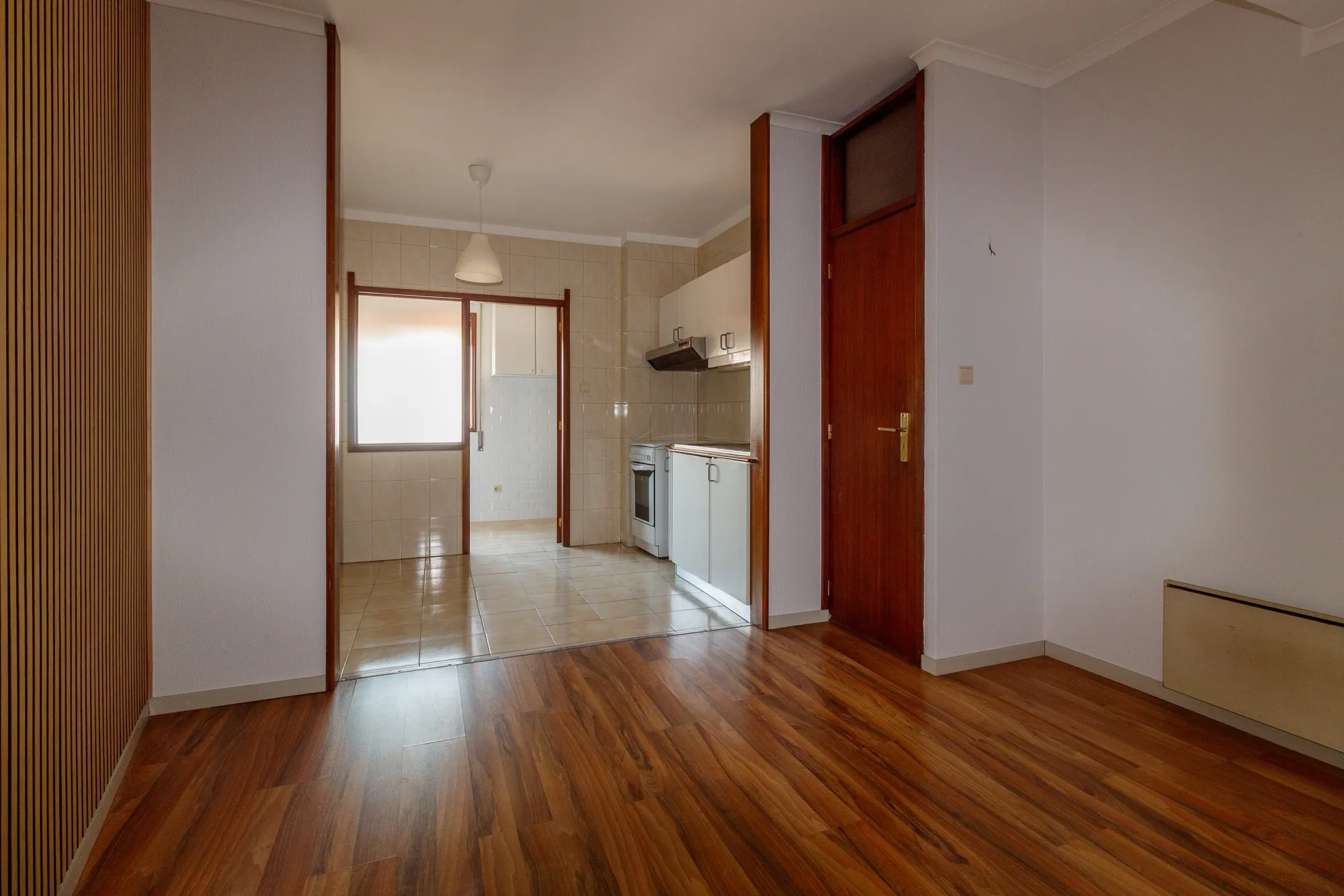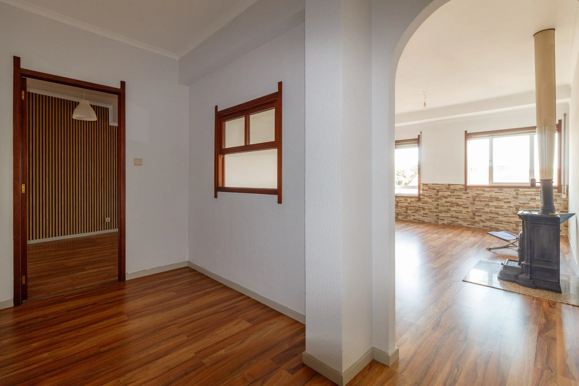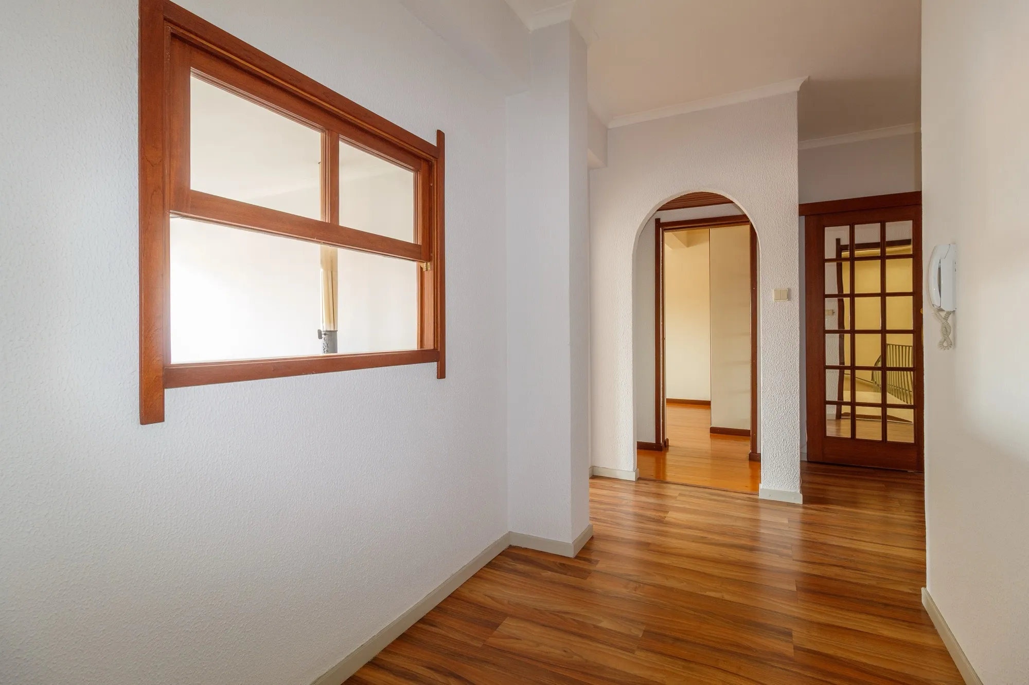 Ao entrar, deparar-se-á com um hall muito espaçoso, que dá acesso a uma grande sala com janela larga, ideal para momentos de convívio, e uma sala mais reduzida que pode servir como escritório ou quarto adicional.