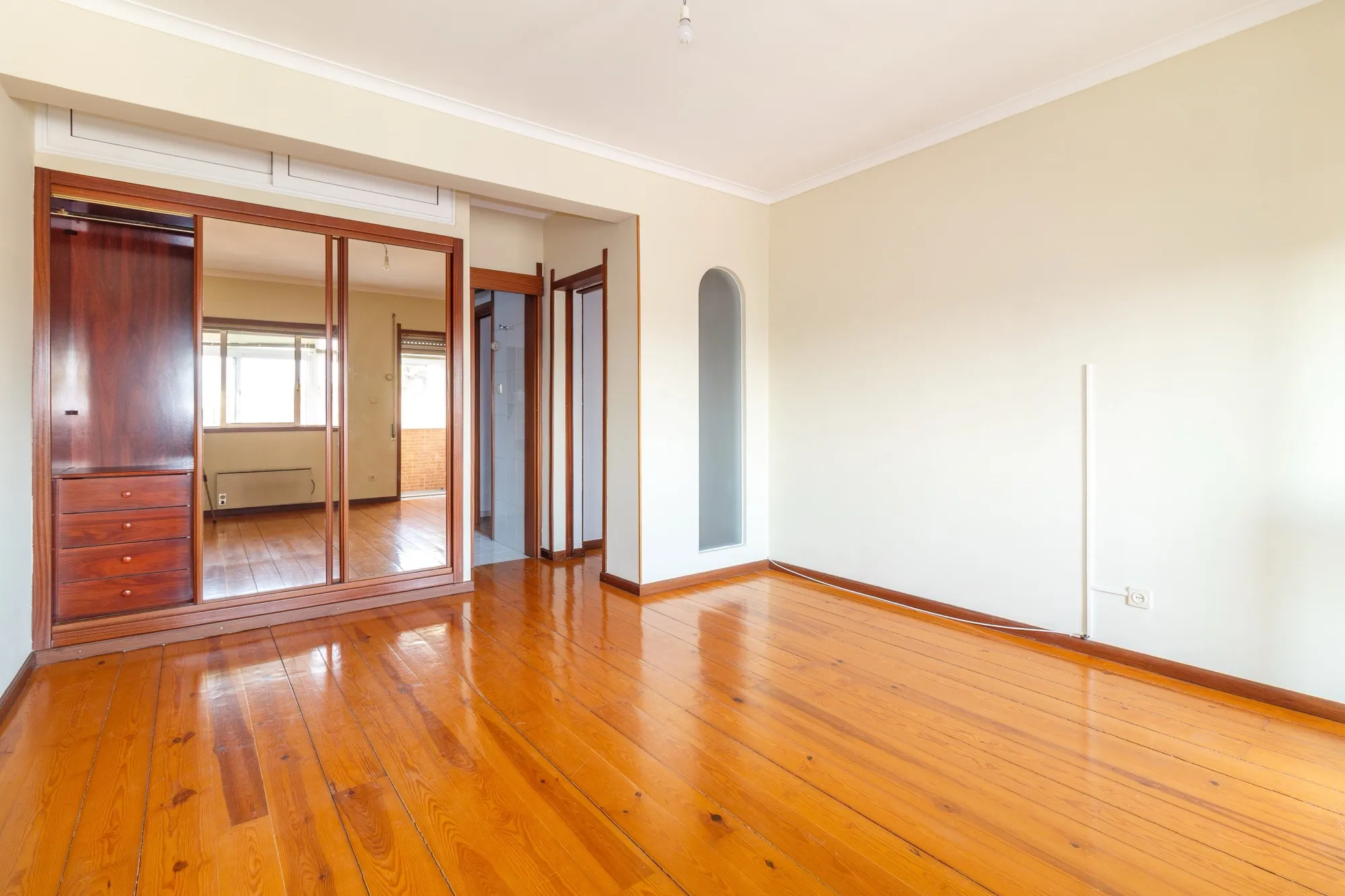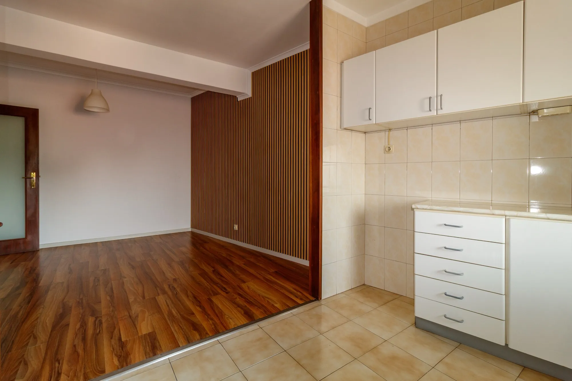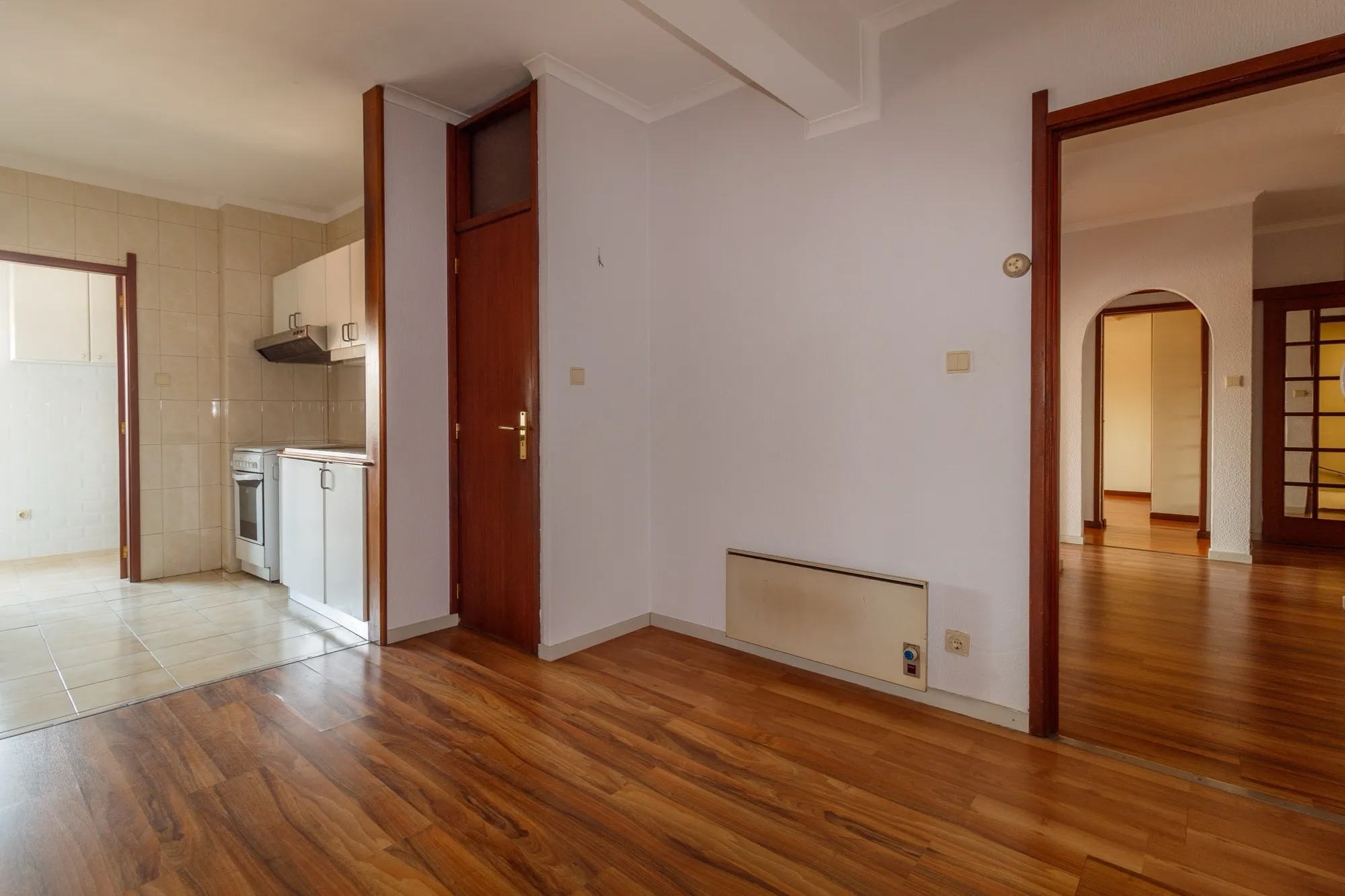 Ao entrar, deparar-se-á com um hall muito espaçoso, que dá acesso a uma grande sala com janela larga, ideal para momentos de convívio, e uma sala mais reduzida que pode servir como escritório ou quarto adicional.